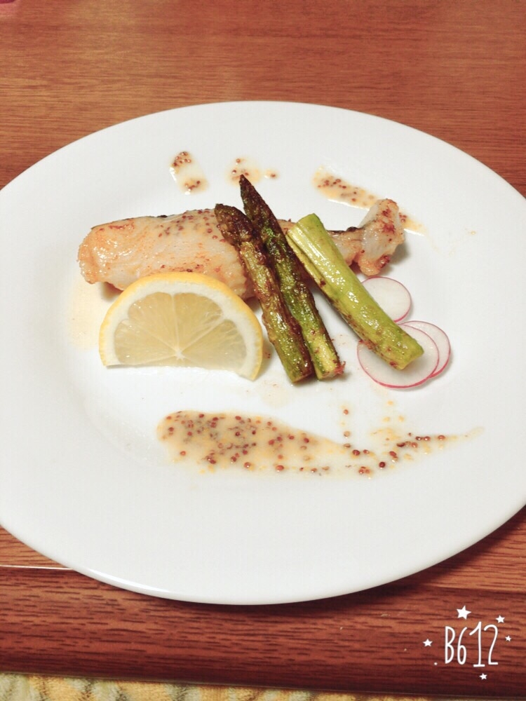 鱈のムニエル 粒マスタードクリームソース 別盛り付けバージョン 食べ物のアイデア 盛り付け 料理
